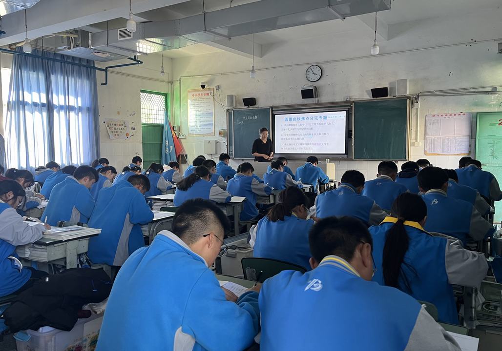 接着是李正琼、桂银银老师带来的分层教学示范课,李正琼老师和桂银银老师聚焦分层教学这一重要教学理念,以《圆锥曲线之焦点分弦》这一专题分别展示了别具一格的分层教学示范课。课堂上,两位老师根据学生的学习能力、知识基础等因素对学生进行了科学合理的分层,为不同层次的学生制定了差异化的教学目标、教学内容以及课后作业。在授课过程中,能关注到每一层学生的学习状态,通过巧妙的引导、个别指导等方式,充分调动各层次学生的学习积极性,让每个学生都能在自己的最近发展区内获得成长,真正做到了因材施教,为探索适合不同学生群体的数学教学模式提供了优秀的范例。